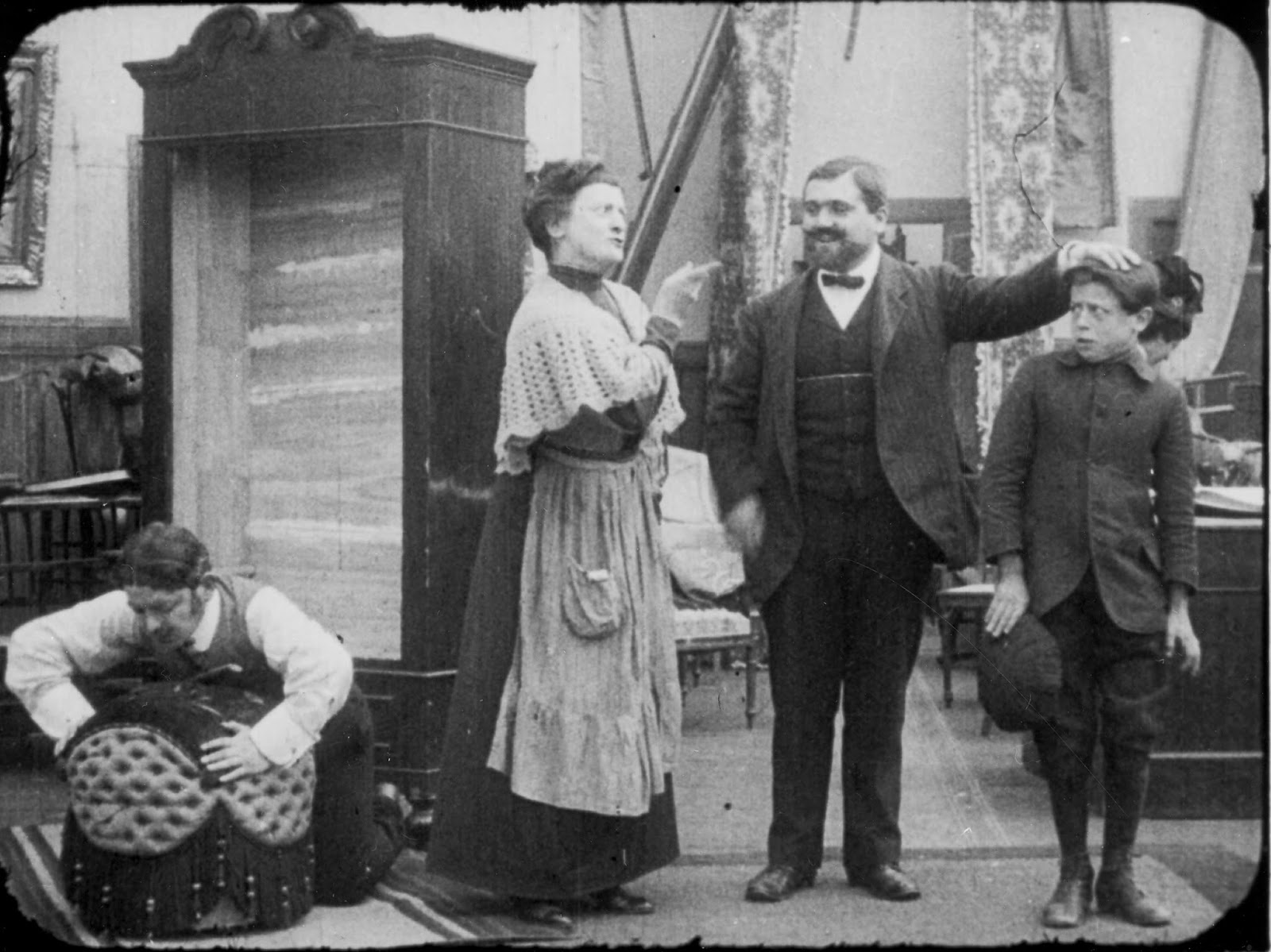 "A boy is brought by his mother to work in a furniture factory, where he causes mischief. To escape punishment, he hides inside a mattress, which is soon hoisted onto a cart to be delivered. From this point on, he creates even greater chaos around him, going about as a walking mattress. His adventures also feature some trick photography. The film ends with the boy returned to his home, where he receives a hearty spanking from his mother. Bernardini and Martinelli’s Il cinema muto italiano 1912 lists an André Deed film, Le avventure di un monello, produced by Itala Film, with a very similar plot. However, despite the Itala Film credit logo at the end of the Desmet Collection’s film, its protagonist is clearly played by a child actor, so its correct identification is still a matter for research."