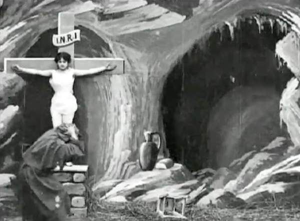Francia, 1898. Regia: [Georges Hatot]. Operatore: [Alexandre Promio]. Int.: Gaston Breteau (Gesù). Prod.: Frères Lumières. 35 mm. – AA: One of the earliest multi-shot Passion Plays of the cinema, conveyed with a tableaux vivants approach, respecting conventions established in pictorial presentations of the life of the Christ. Gaston Breteau was one of the first portrayers of Jesus Christ on the screen, together with Frank Russell in The Passion Play of Oberammergau (US 1898, PC: Edison, D: Henry C. Vincent). Soon to be followed by many other production companies. There is a reverent power in this series, a sense of a mission in translating millennia of holy visual legacy to a new born medium. The syntax is primitive, yet with a true sense of both the human and the sacred. - At the same time, as always, there is a current of blasphemy, of transgressing the image ban.
