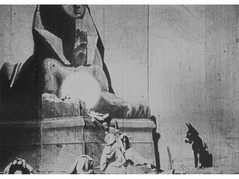 | La Passion II. La Fuite en Égypte. Catalogue Lumière Vue N° 934. “Joseph, conduisant dans le désert l’âne qui porte la Vierge et l’enfant Jésus, s’arrête au pied du Sphinx pour y passer la nuit. Après avoir installé la Vierge, il s’enroule dans son manteau et s’endort. Les soldats romains se précipitent pour s’emparer de la Vierge, mais apercevant tout à coup le Sphinx, emblème d’une divinité, ils tombent agenouillés pleins de terreur, pendant que Joseph éveillé se jette au-devant d’eux pour protéger la Vierge et son Enfant.” Opérateur: Alexandre Promio. Date: [1897] - 5 décembre 1898. Lieu: France, Paris. Projections: Déposée au Greffe du Conseil des Prud'hommes de la Ville de Lyon le 5 décembre 1898.Programmée le 25 décembre 1898 à Lyon (France) sous le titre La Fuite en Égypte (Le Progrès, 25 décembre 1898). Décorateur : Marcel Jambon. Eléments filmiques: négatif Lumière - 4 copies Lumière - 2 copies Edison. Lieu: décor. Genre: art, comédie, religion. Sujet: comédien. Objet: costumes. Séries: La Passion, Les scènes reconstituées tournées par Alexandre Promio (1898). |